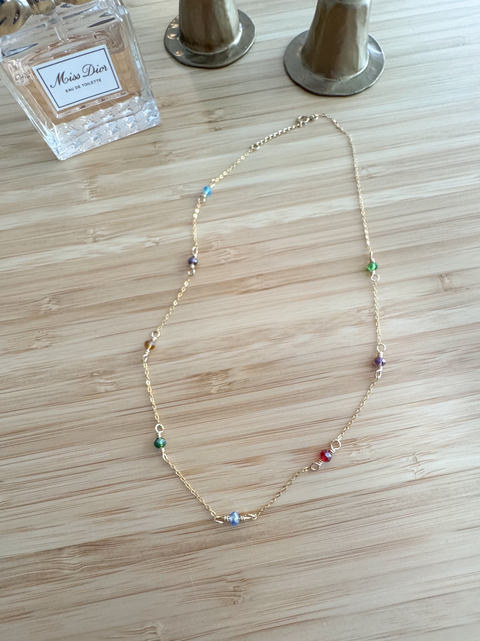 The Odette Necklace is an elegant piece that adds a touch of playfulness to any outfit. Crafted with fun and colourful glass beads, it showcases a unique charm. With its versatile style and eye-catching design, this necklace is perfect for any occasion.