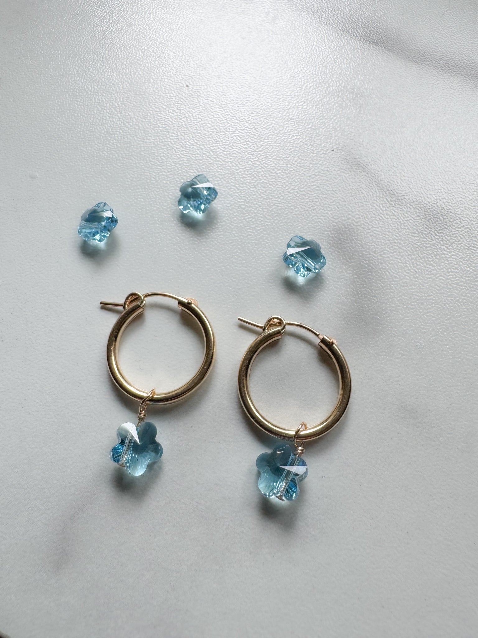 19mm gold filled hoops with blue Swarovski glass flower removable bead.